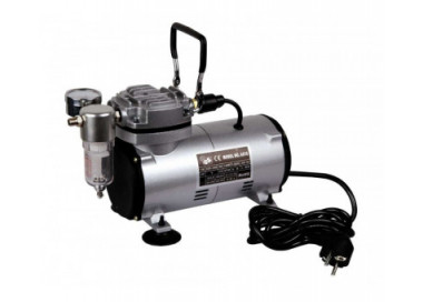 Mini Compressore aerografo AS-18 Portatile compatto e leggero. Protetto termicamente. Ultra silenzioso: può essere utilizzato in casa Arresto e avvio automatico Questo compressore a pistone oil-free (Airbrush Compressor) è un’ottima alternativa all’utilizzo di bombolette di propellente. È dotato di aria su richiesta il che significa che, una volta raggiunta la pressione di uscita, si spegne automaticamente. Si riavvia quando l’aerografo viene attivato e la pressione diminuisce. Ideale per designer, modellisti, artisti, decoratori. Dotato di manometro, separatore d’acqua e filtro aria Struttura leggera in alluminio Pistone senza olio senza manutenzione Dotato di maniglia per un facile trasporto
