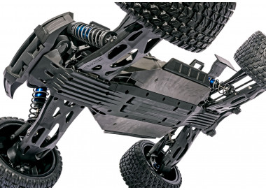 Le doppie batterie 4S e il servocomando dello sterzo sono posizionati in modo da portare il peso il più basso possibile e fornire protezione a questi