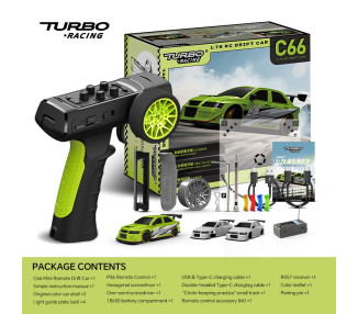 La prima micro auto sportiva con radiocomando in scala 1:76. E' un eccellente modello di micro auto fornita con un radiocomando di alto livello. La linea aerodinamica della carrozzeria rende l'intera vettura aggressiva. Il modello, anche se piccolissimo si pilota con assoluta precisione come i modelli in scala più grande. Turbo Racing C71 ti permette sfide anche sul tavolo di casa, con un tempo...