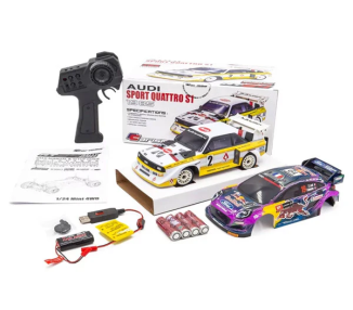 La confezione include tutto il necessario per l'uso del modello, da una radio a 2 canali con