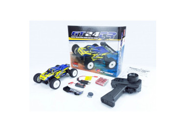 Il servocomando dello sterzo è molto veloce, l'auto è montata di serie su cuscinetti a sfera con 2 differenziali in plastica. Il GT24TR è pronto per l'uso con una batteria NiMh da 130 mAh 7,2 V e un caricatore USB.