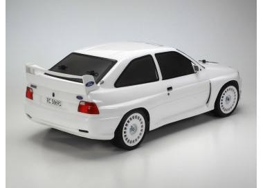 Questo kit di montaggio del modello R/C ricrea una Ford Escort Mk.6 hatchback a tre porte con personalizzazioni come parafanghi allargati (blister fenders), spoiler anteriore e alettone posteriore. La forma potente è data da una carrozzeria in policarbonato leggera e resistente, e sono inclusi adesivi per aggiungere dettagli. Il modello si basa sull'adattabile e facile da usare telaio TT-02, a trasmissione 4WD ad albero.