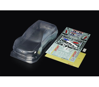 Carrozzeria 131 Abarth Rally trasparente in policarbonato Lexan 1mm, con kit decals "FIAT FRANCE" ed accessori in plastica.Made in Italy. Si adatta a telai touring 1/10 con carreggiata 190 mm.