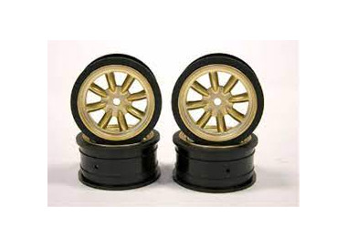 SET 4 PNEUMATICI STRADALI INCOLLATI SU CERCHIO 1/10