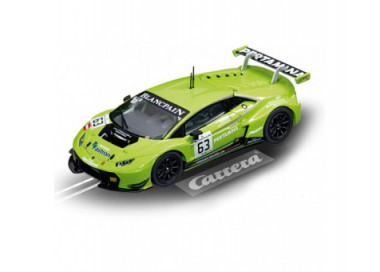 La slotcar Carrera 1/32 Lamborghini Huracán GT3 "No.63" colpisce per le luci anteriori, posteriori e dei freni e per i dettagli fedelmente riprodotti. Questa vettura Carrera può essere codificata individualmente; è controllabile digitalmente e garantisce ore di divertimento in gara.